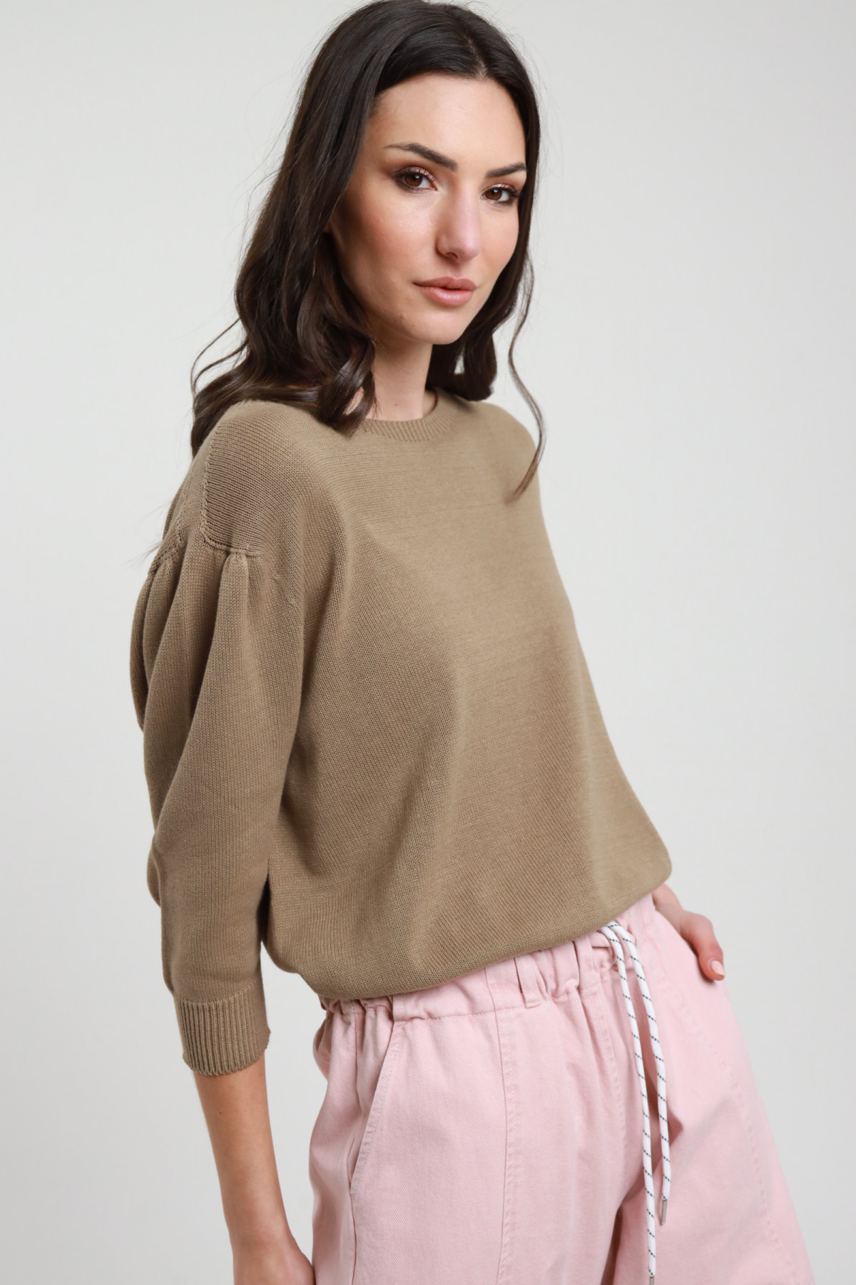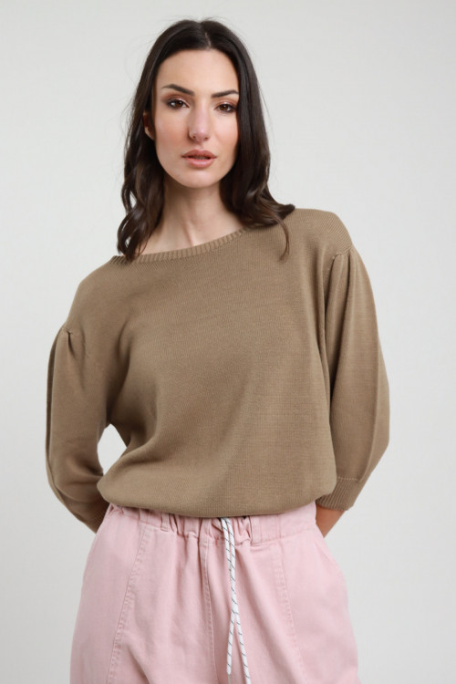 Maglia Girocollo Spalla Scesa con Maniche a Sbuffo.