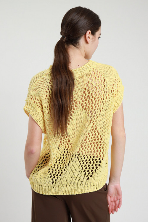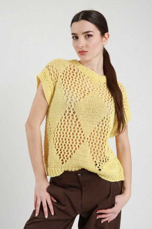 Gilet in Maglia con Rombi, Girocollo Traforato.