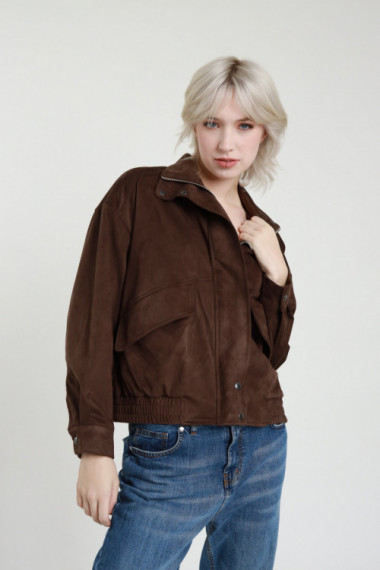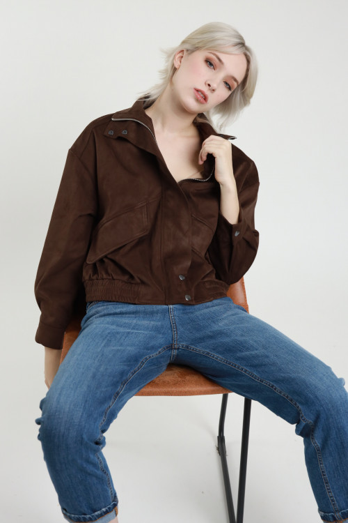 Bomber con Colletto in Ecodainetto con Tasche con Pattina sul Davanti.