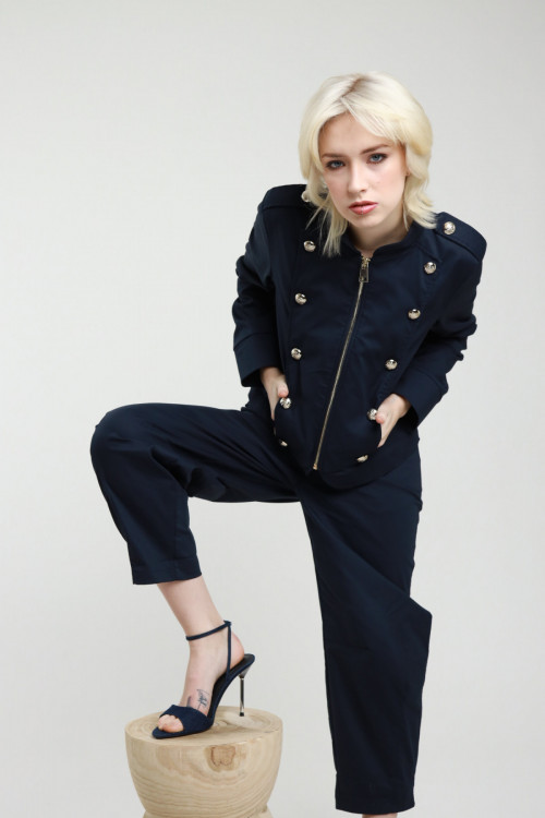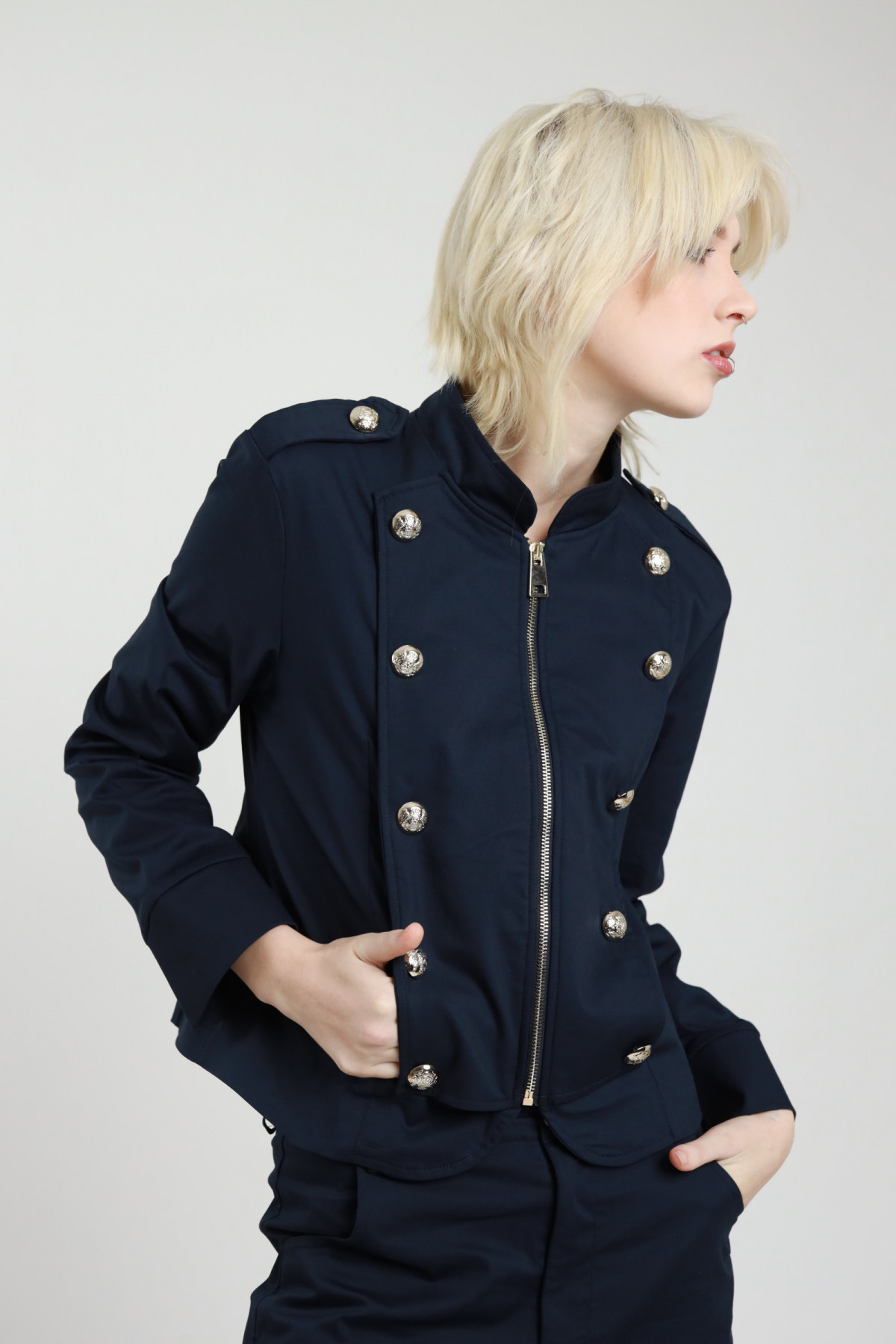Giacca Crop Stile Militare con Bottoni Applicati.