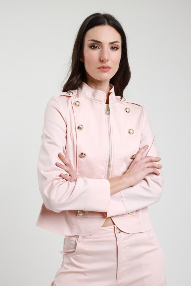 Giacca Crop Stile Militare con Bottoni Applicati.
