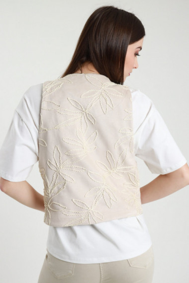 T-Shirt Mezze Maniche in Cotone con Gilet in Ecodainetto con Ricami Floreali e Chiusura Lacci.