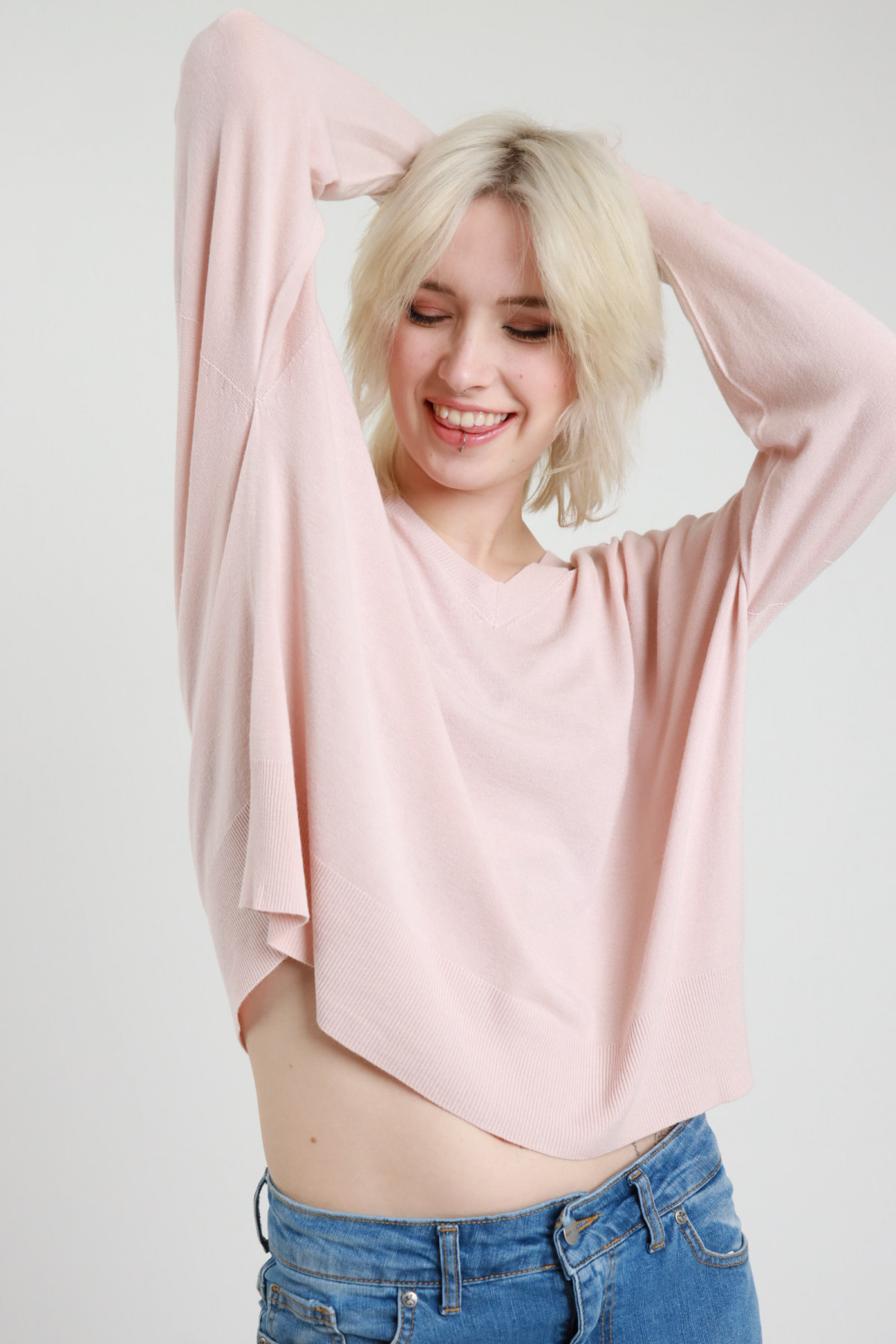 Maglia Maniche Lunghe Scollo V con Dettagli Cut-Out.