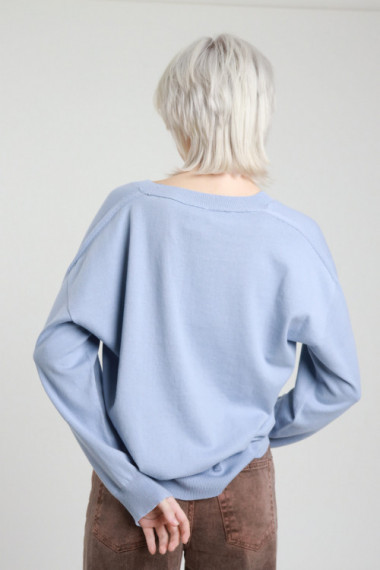 Maglia in Cotone con Scollo a V e Bordi a Costine.