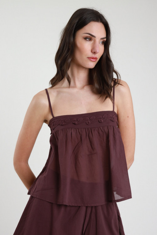Top in Cotone con Spalline Sottili e Dettaglio Passamaneria sul Fronte, Elastico sul Retro.