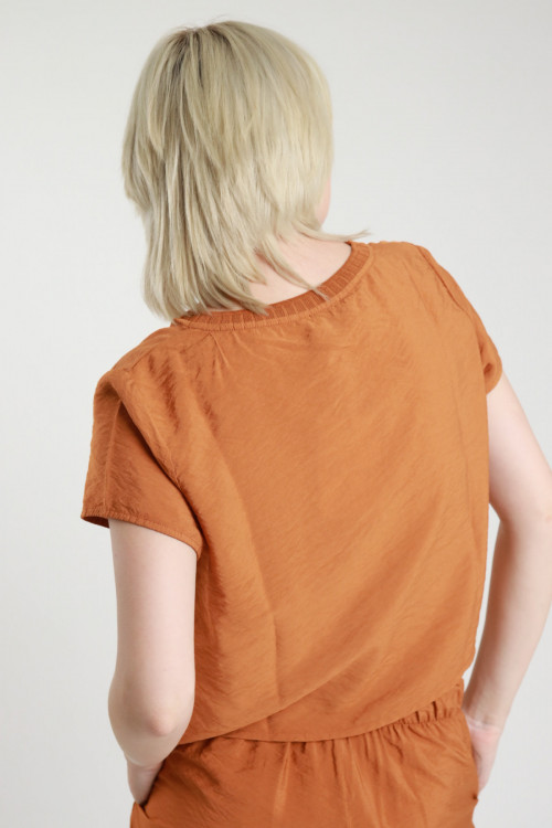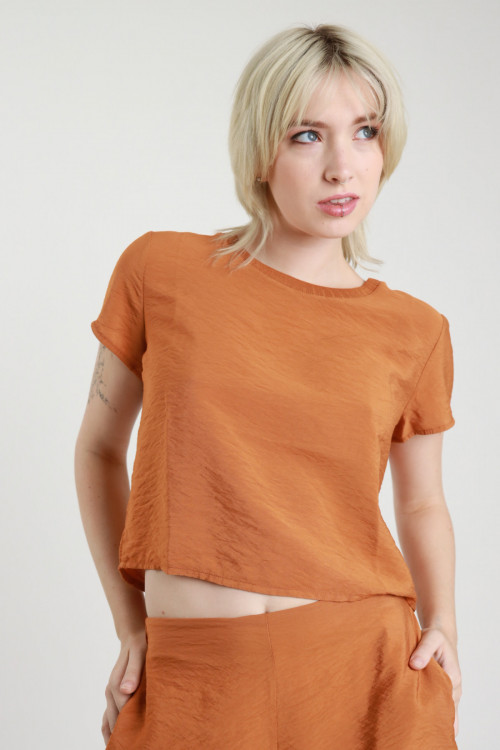 T-Shirt Crop Maniche Corte con Collo a Costine.