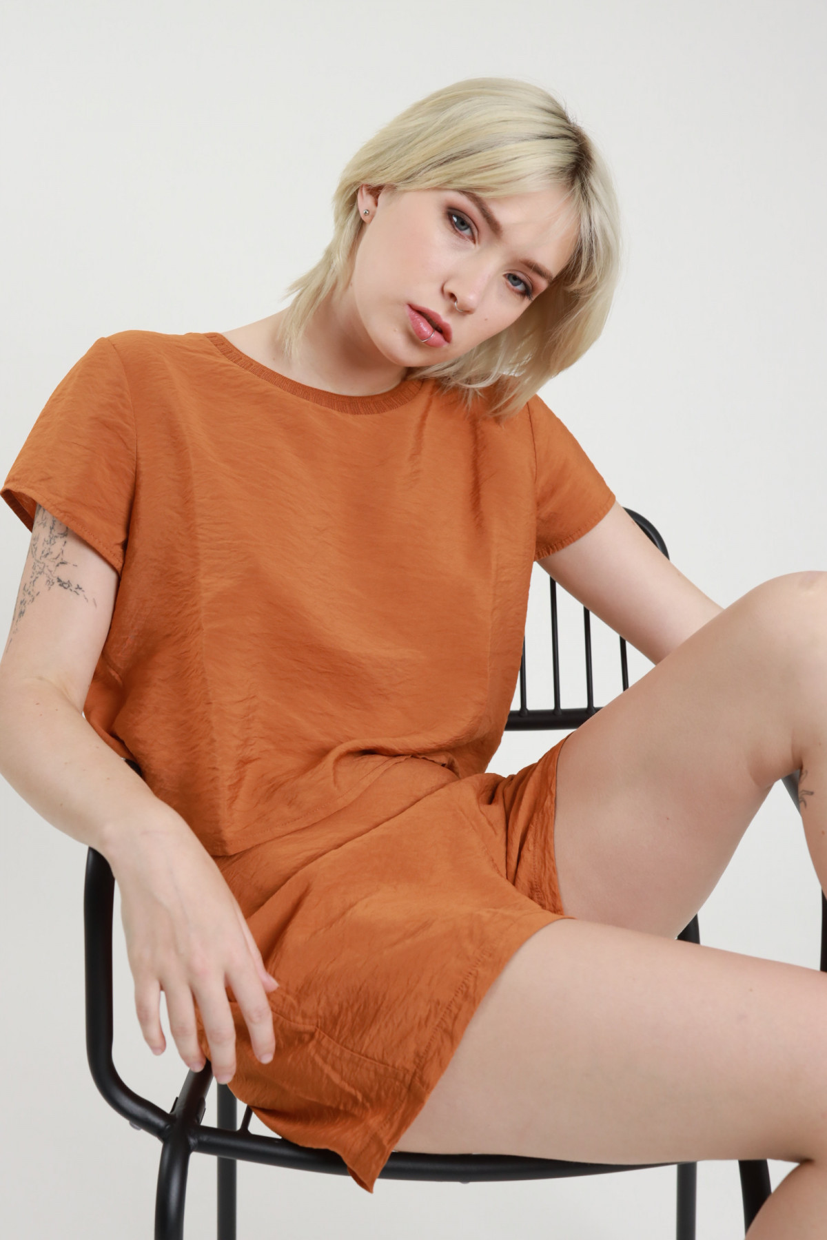 Shorts mit Gürtel, umgeschlagenem Saum und Geldbeuteltaschen. 97 % CO 3 % Stück