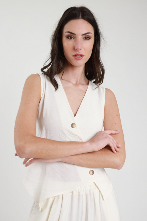 Gilet Svasato con Chiusura Bottoni Diagonali, Laccio Regolabile sul Retro.