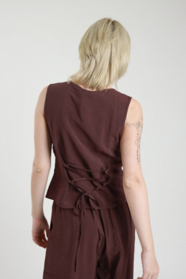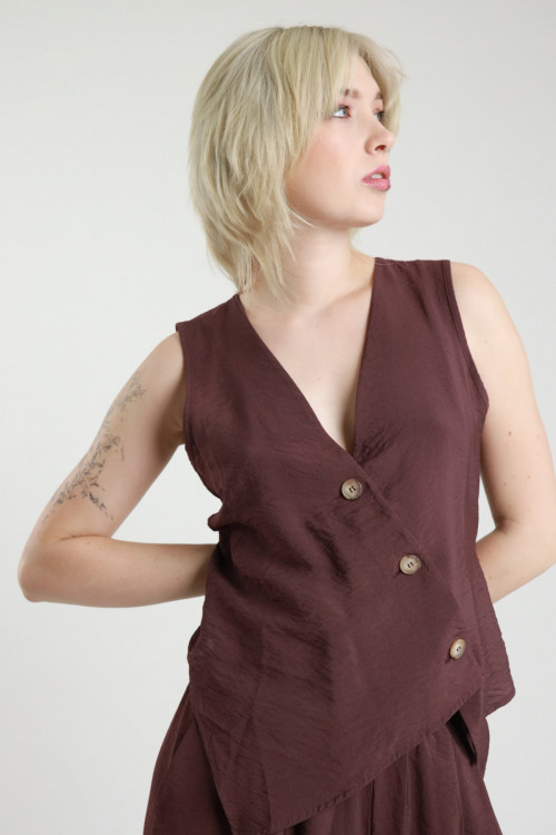 Gilet Svasato con Chiusura Bottoni Diagonali, Laccio Regolabile sul Retro.