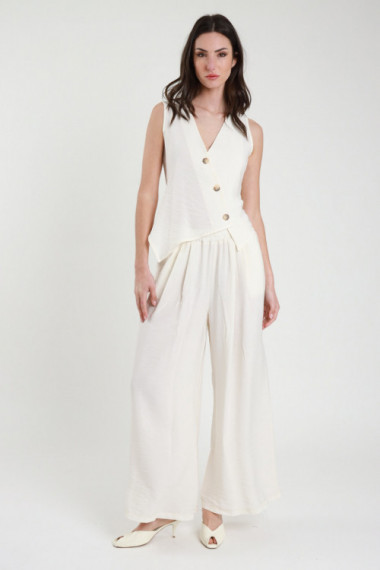 Pantalone Palazzo Ampio, Elastico In Vita Con Coulisse, Tasche A Portafoglio Sul Fronte e Tasche Quadrate Sul Retro.