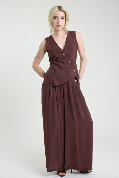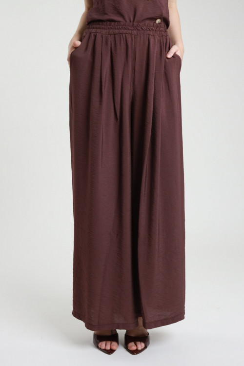 Pantalone Palazzo Ampio, Elastico In Vita Con Coulisse, Tasche A Portafoglio Sul Fronte e Tasche Quadrate Sul Retro.