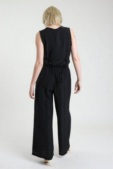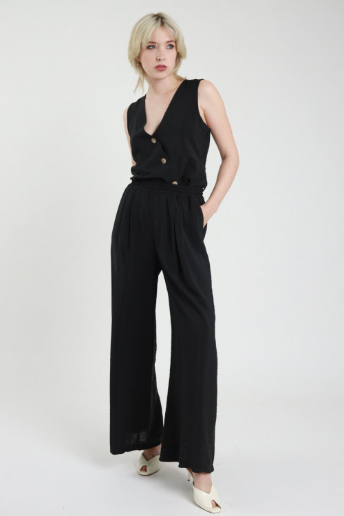 Pantalone Ampio con Pences sul Fronte, Elastico in Vita e Tasche Laterali.