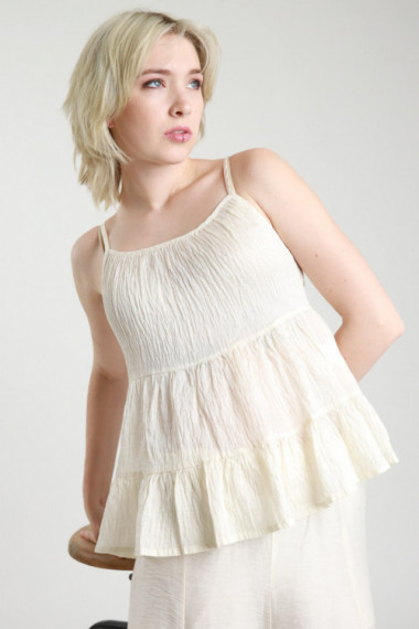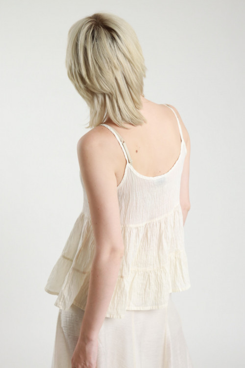 Abito Lungo in Cotone con Spalline Sottili e Dettaglio Passamaneria sul Fronte, Balza sul Fondo ed Elastico sul Retro.
