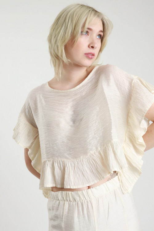 Blusa Crop Girocollo con Rouches sui Bordi.