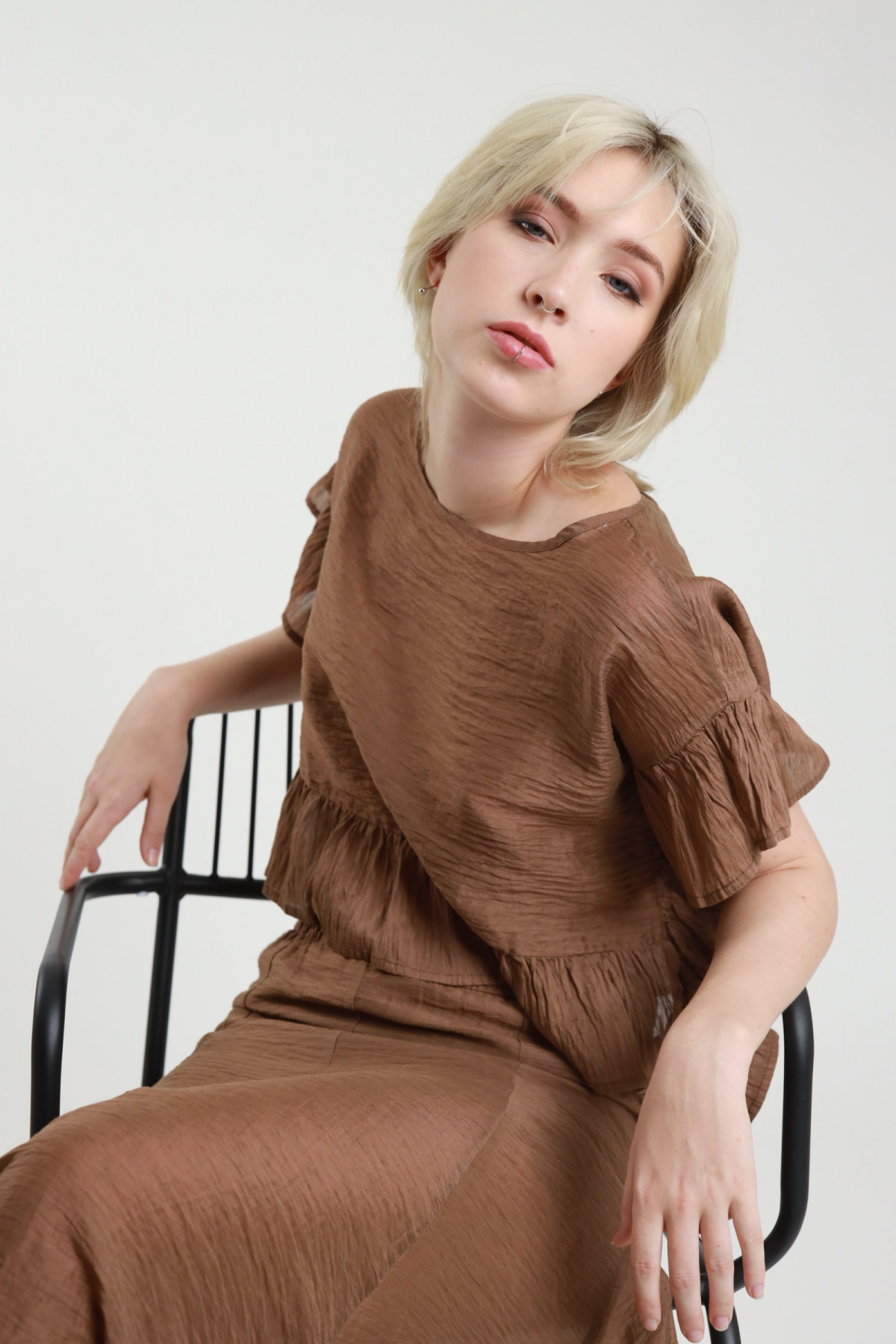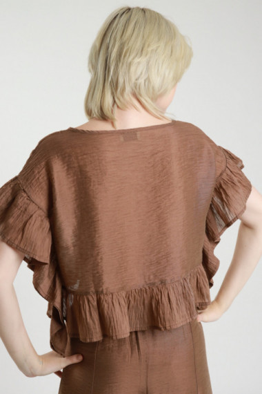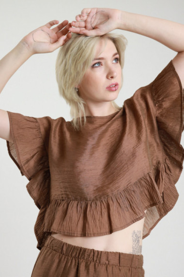 Blusa Crop Girocollo con Rouches sui Bordi.