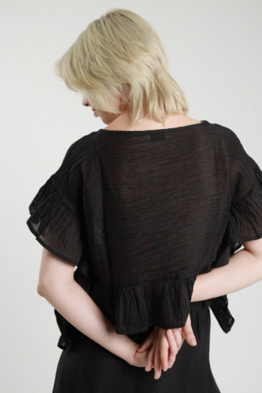 Blusa Crop Girocollo con Rouches sui Bordi.