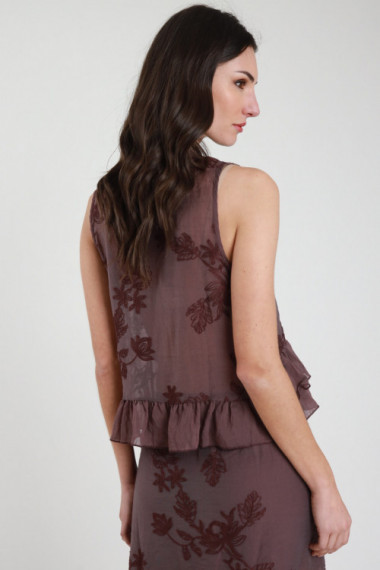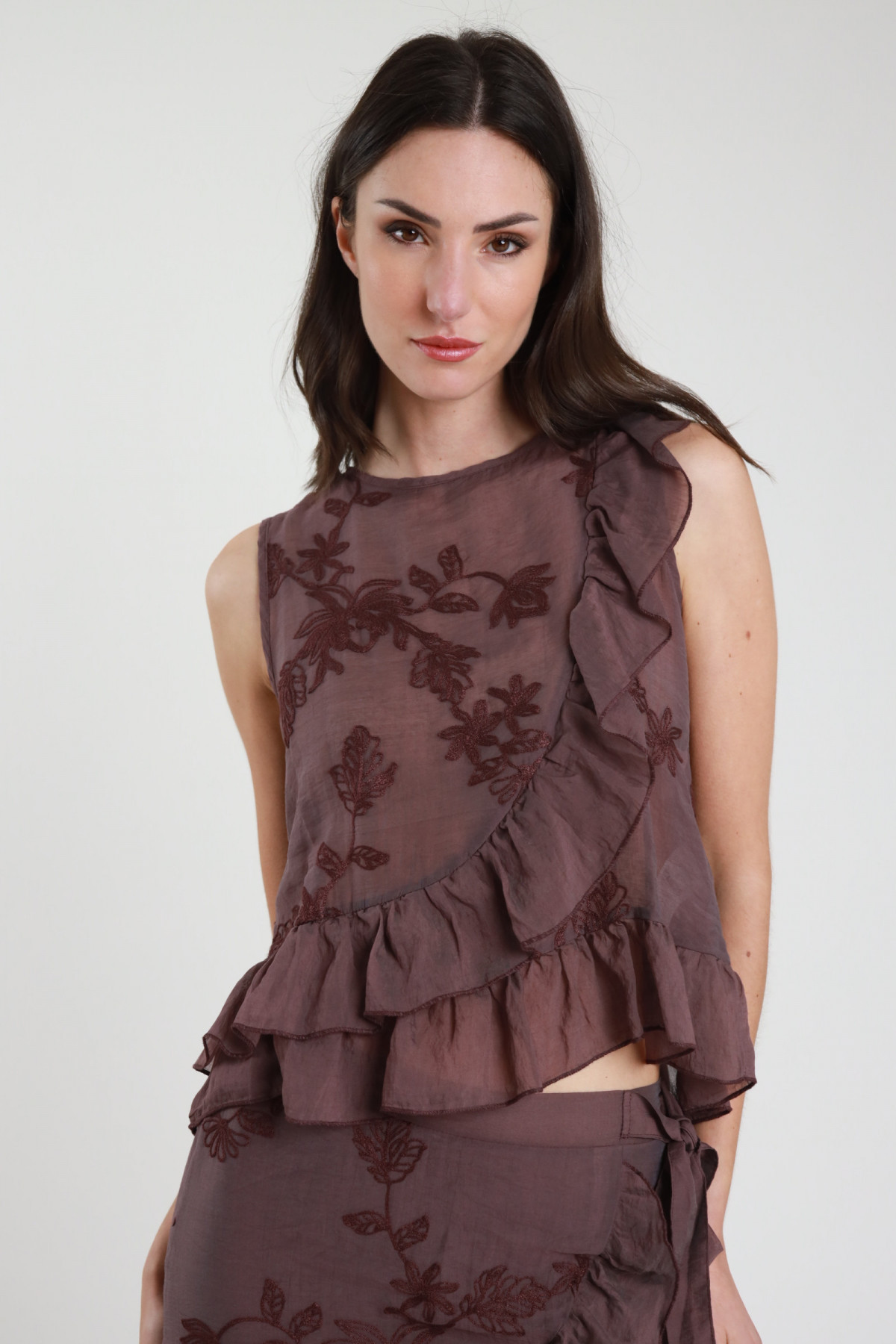 Blusa Girocollo Ricamata con Gala sul Fronte e Balza sul Fondo.