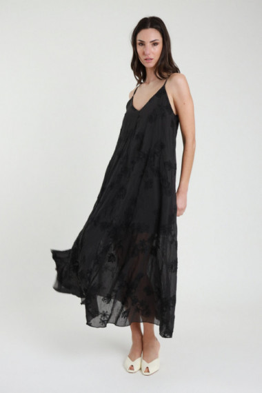 Abito Lungo Ricamato Semitrasparente con Sottoveste più Corta, Spalline Sottili Regolabili.