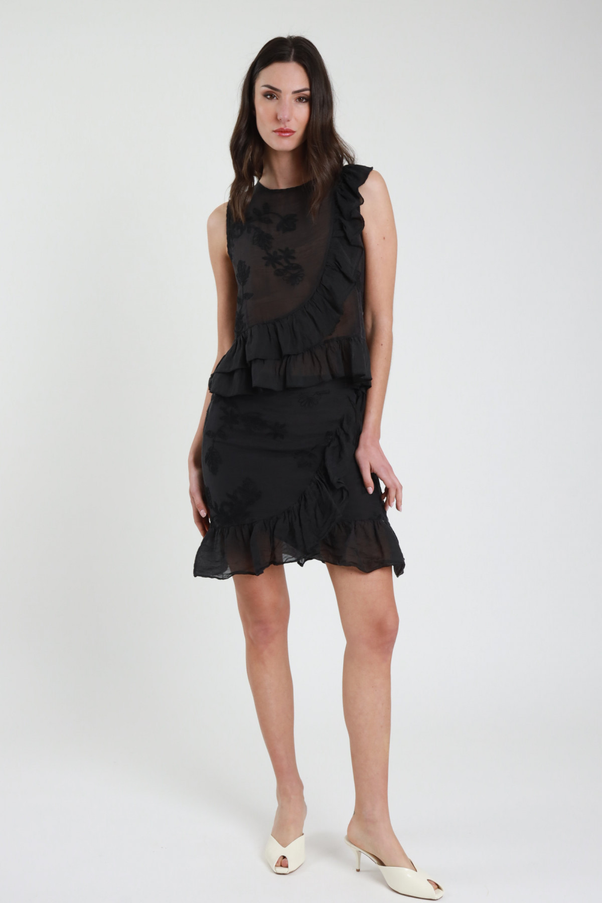 Minigonna Portafoglio Ricamata con Rouches sul Fronte e sul Fondo.
