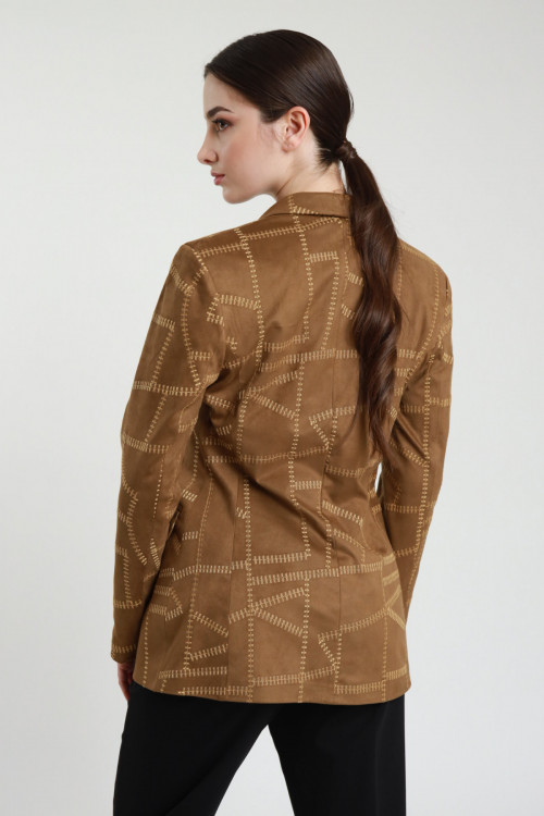 Blazer Monopetto in Ecodainetto con Ricami, Tasche con Pattina.