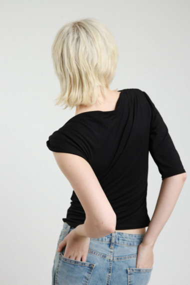 Maglia Monospalla con Manica 3/4 e Dettaglio Gioiello Dorato.