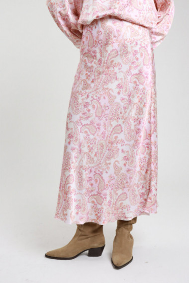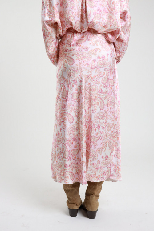 Gonna Lunga in Viscosa Elasticizzata Effetto raso, con Elastico in Vita, Fantasia Cashmere.