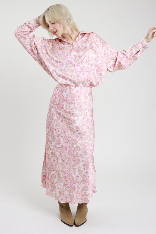 Camicia Over in Viscosa Elasticizzata Effetto Raso in Fantasia Cashmere.