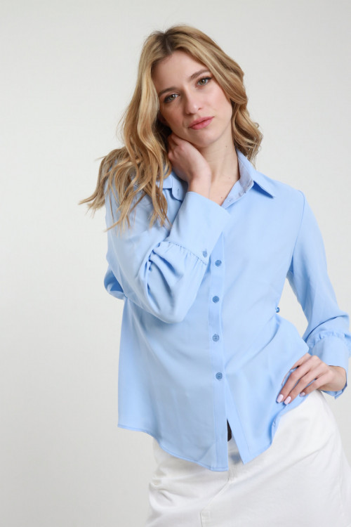 Camicia Sfiancata con Bottoncino Sui Fianchi Che Crea Una Piccola Ripresa.