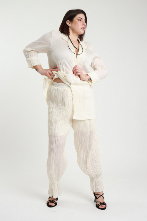 Pantalone Effetto Stropicciato con Elastico in Vita e Sulle Caviglie - Linea Curvy Susy Star.