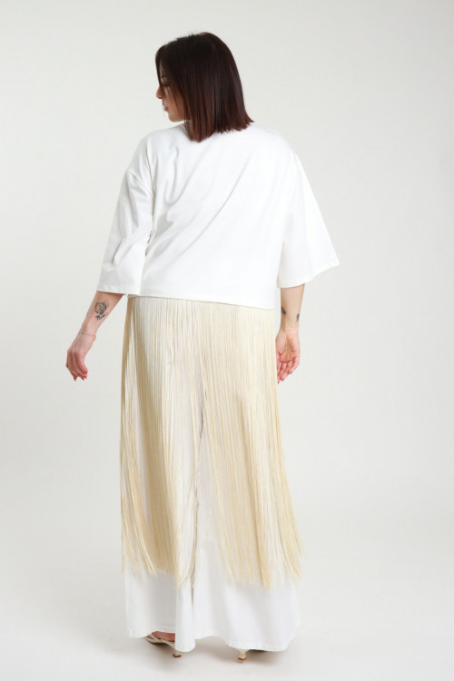 Maxi T-shirt in Cotone Elasticizzata con Frange Lunghe sul Fondo - Linea Curvy Susy Star.
