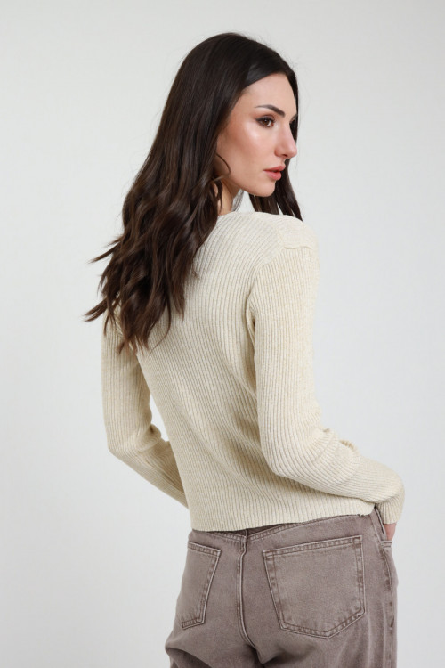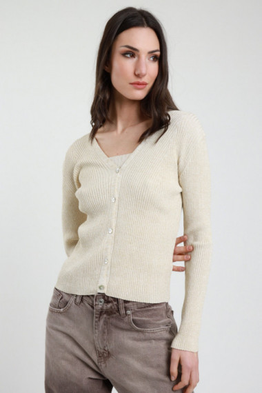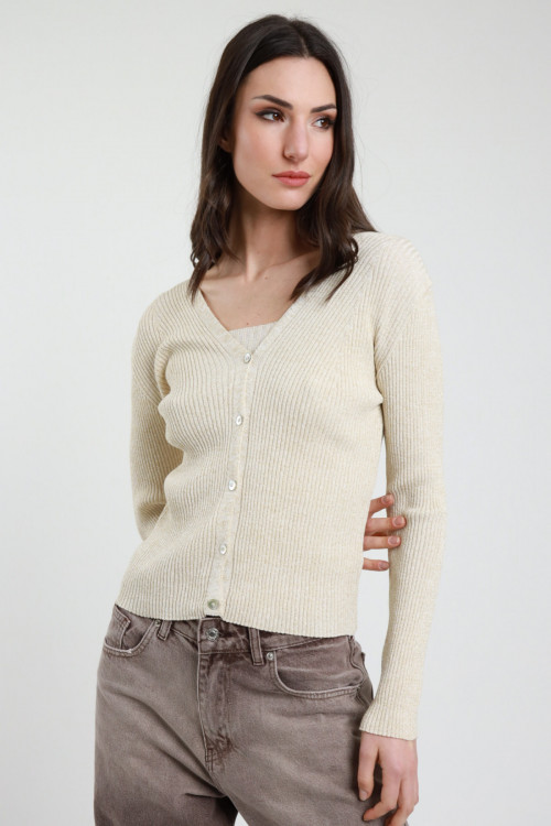 Cardigan a Costine in Lurex con Chiusura Bottoni.