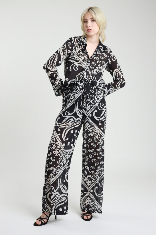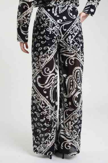 Pantalone in Cotone Gamba Dritta in Fantasia Stampa Bandana, Elastico in Vita con Coulisse.
