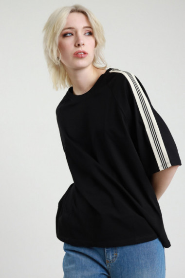 T-Shirt Over in Cotone con Bande sulle Maniche.