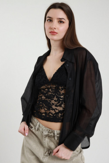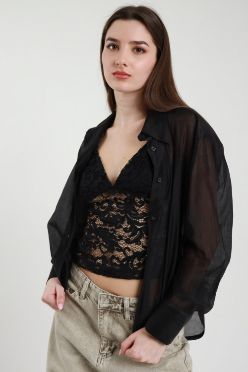 Camicia Semitrasparente con Top in Pizzo, Spalline Sottile e Imbottitura.