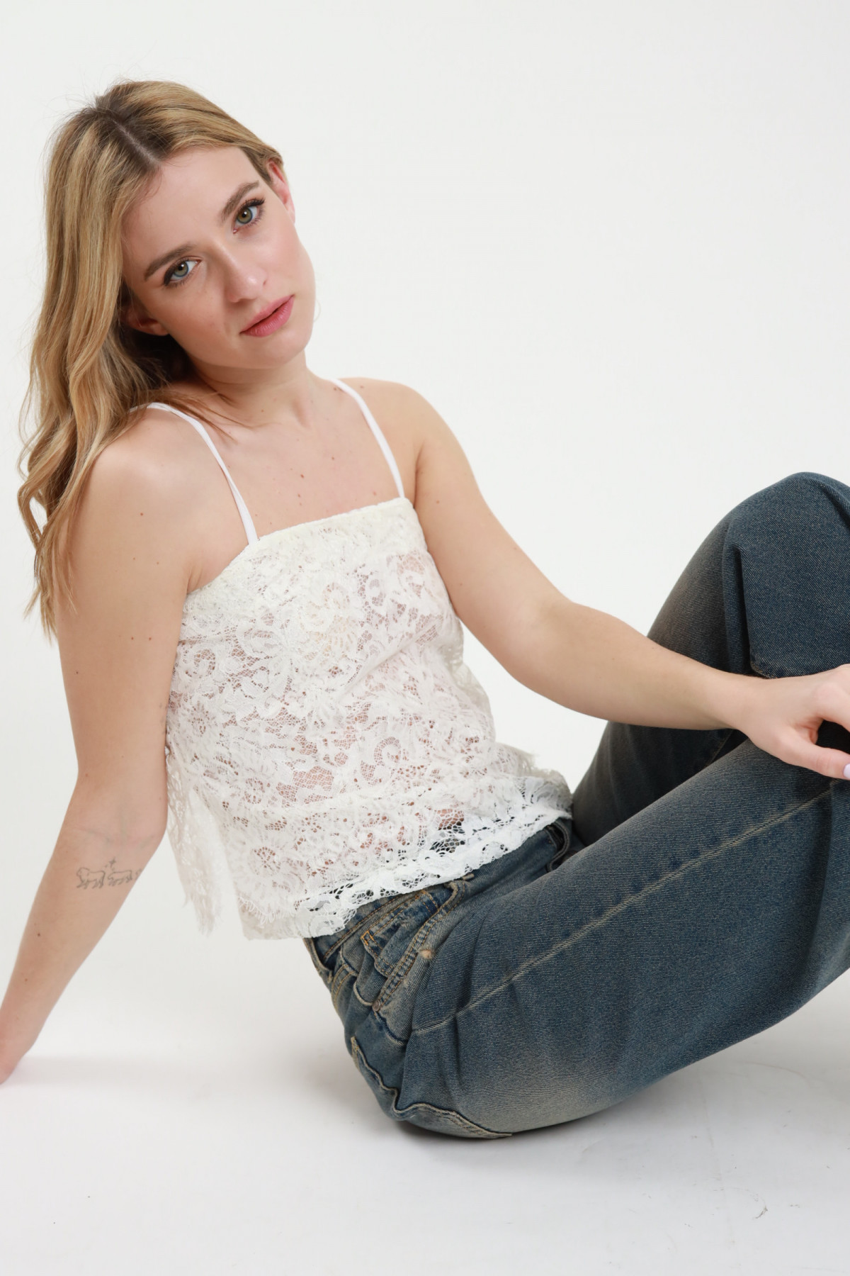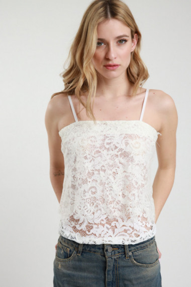 Top Squadrato in Doppio Pizzo con Spalline Sottili.