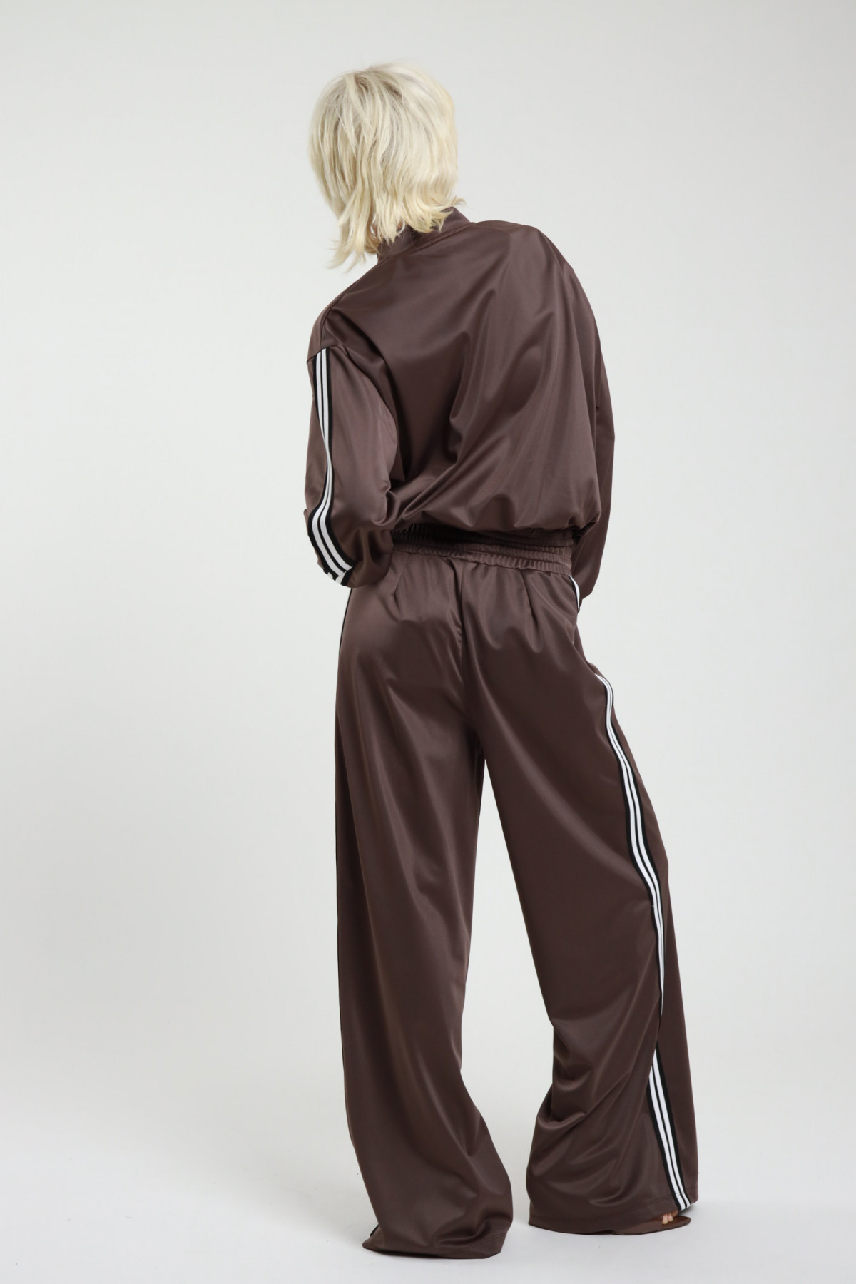 Completo in Felpa con Giacca Bomber con Zip Dorata + Pantalone a Palazzo con Elastico e Coulisse in Vita.
