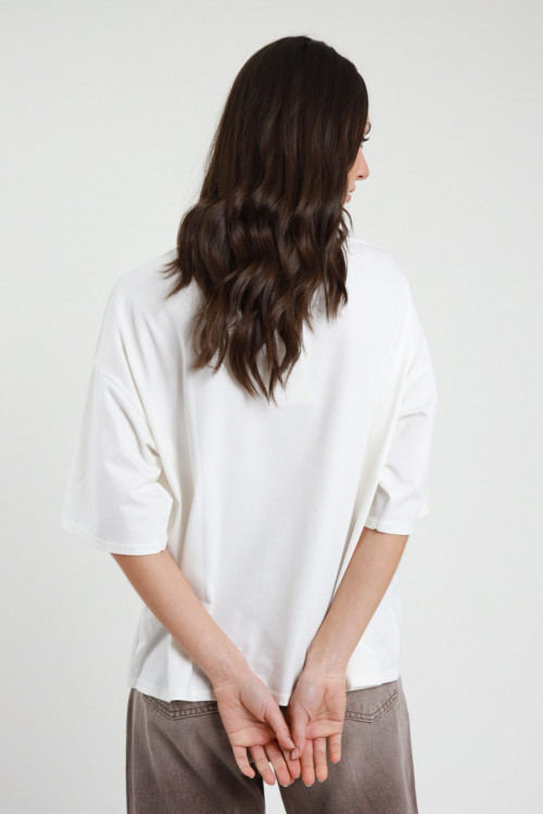 T-Shirt Over, Girocollo Moribo, Manica Extra Stampa Con Angelino e Scritta "Los Angeles With Love". 94%co 6%ea
