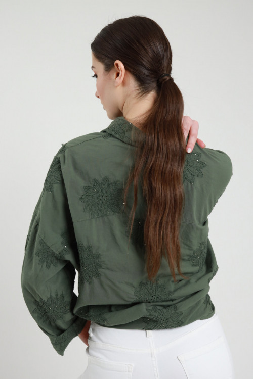 Camicia Over con Applicazione scritta "LOVE" con Perle e Strass.