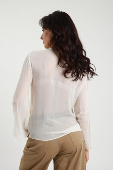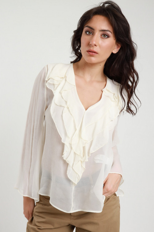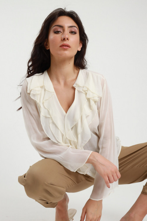 Blusa Semitrasparente con Rouches sul Fronte e Maniche Ampie.