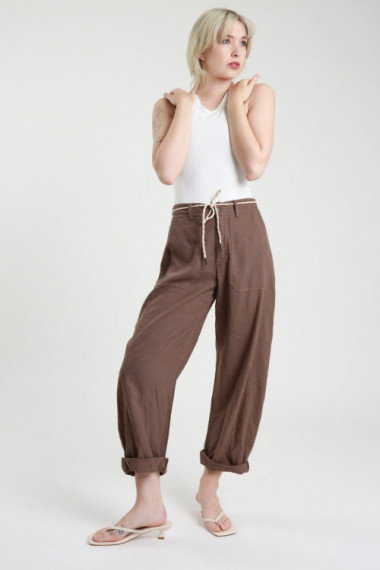 Pantalone Ovetto con Tasche Frontali, Passanti con Cinturina in Vita.