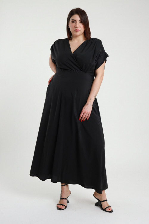 Abito Lungo con Incrocio sul Seno Fasciato in Vita e Gonna Ampia - Linea Curvy Susy Star.