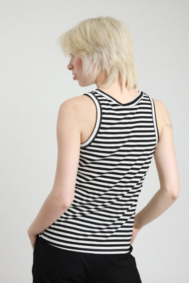 Canotta in Viscosa Elasticizzata a Costine in Fantasia Rigata.