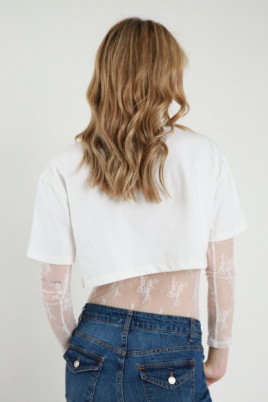 Body in Pizzo con T-Shirt Crop + Spilla Gioiello.