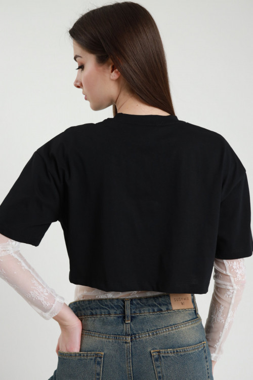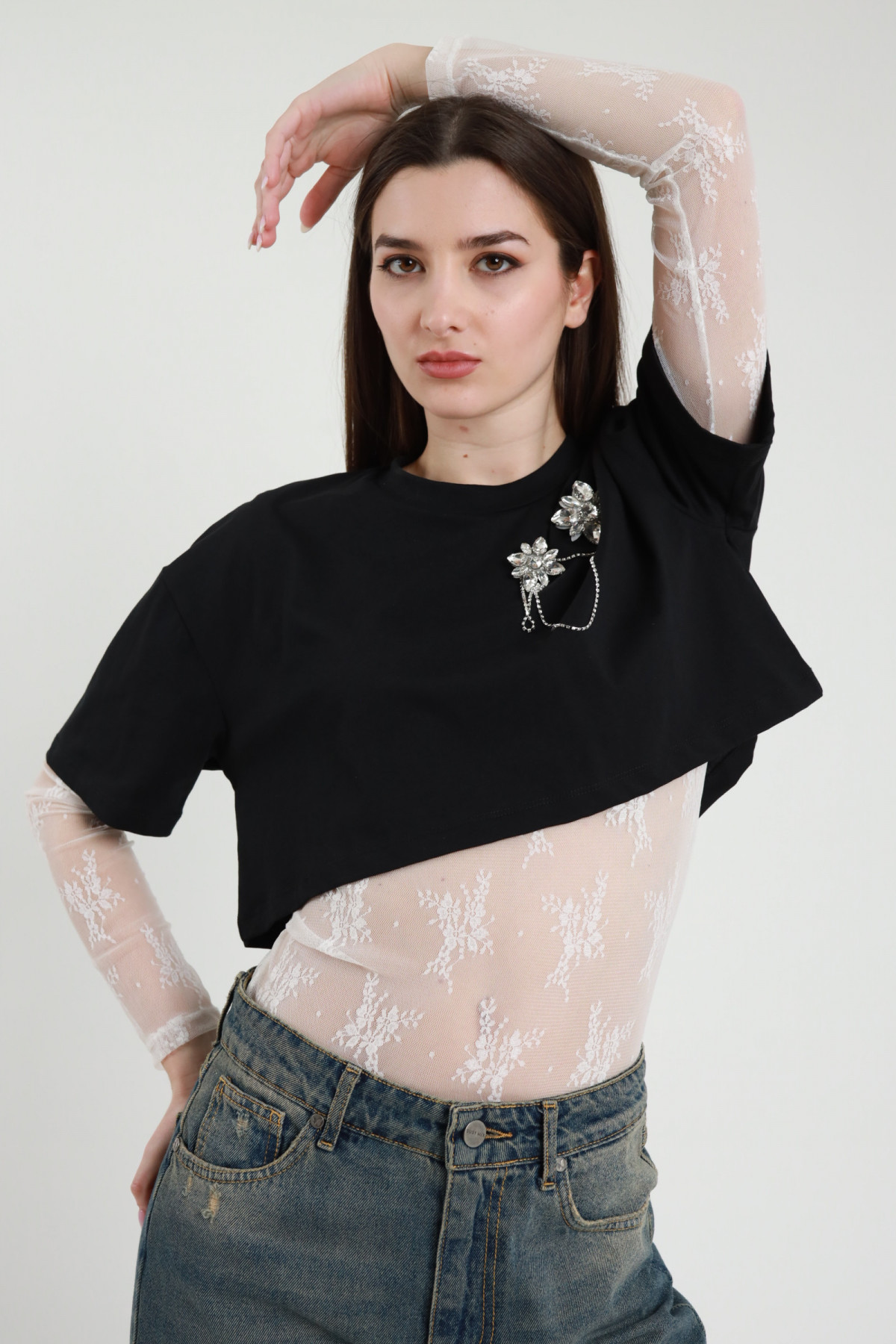 Body in Pizzo con T-Shirt Crop + Spilla Gioiello.