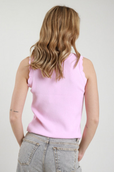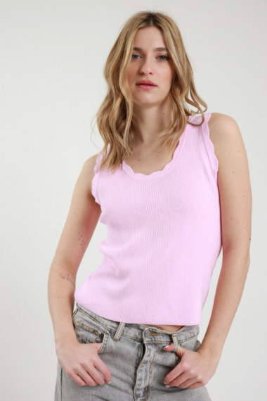Canotta in Viscosa Elasticizzata a Costine con Bordi Ondulati, Scollo Rotondo.