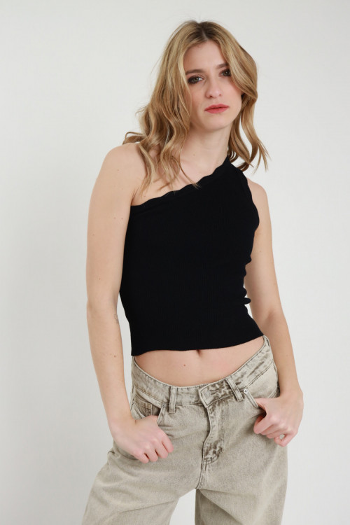 One-Shoulder-Tanktop mit Crop-Cut-Juwel 96 % pro Jahr, 4 % pro Stück