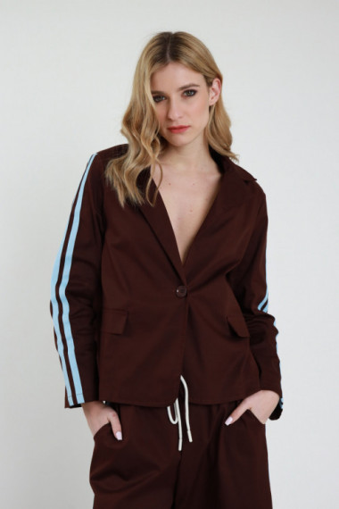Giacca Over in Cotone Elasticizzato con Bande Laterali.