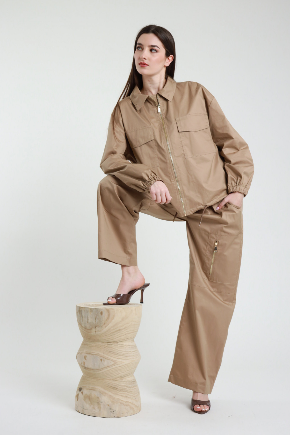 Pantalone Gamba Dritta con Tasconi Laterali con Zip, Elastico in Vita, Bottoncino sul Fondo Regolabile.