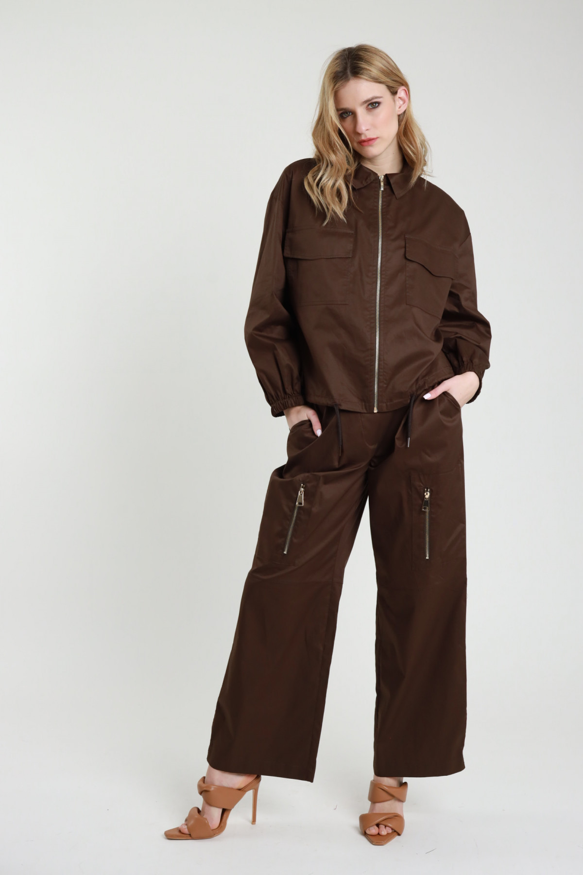 Pantalone Gamba Dritta con Tasconi Laterali con Zip, Elastico in Vita, Bottoncino sul Fondo Regolabile.