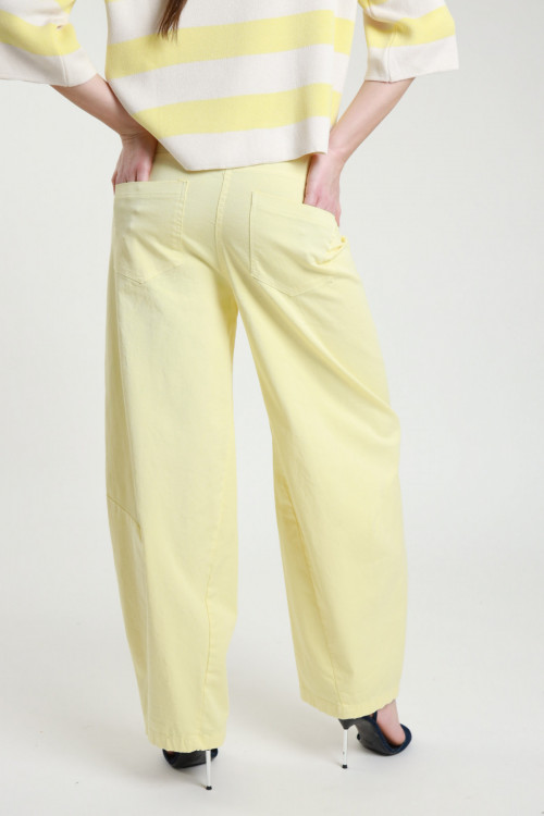 Pantalone Ovetto Over, Tasconi Sul Fronte, Cintura Con Gioiellino Stellina. 100%co